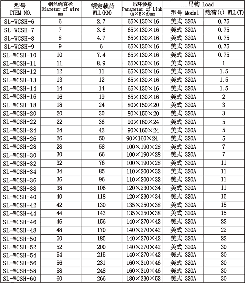 单腿成套钢丝绳索具
