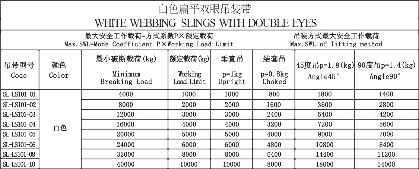 白色扁平双眼吊装带